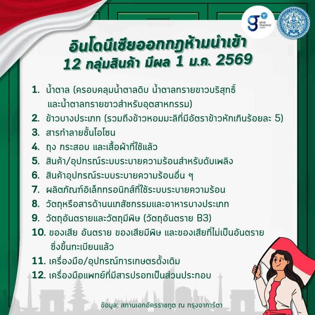 กระทรวงการค้าอินโดนีเซีย ได้ออกกฎกระทรวงเกี่ยวกับสินค้าที่ห้ามนำเข้าซึ่งมีผลบังคับใช้ตั้งแต่วันที่