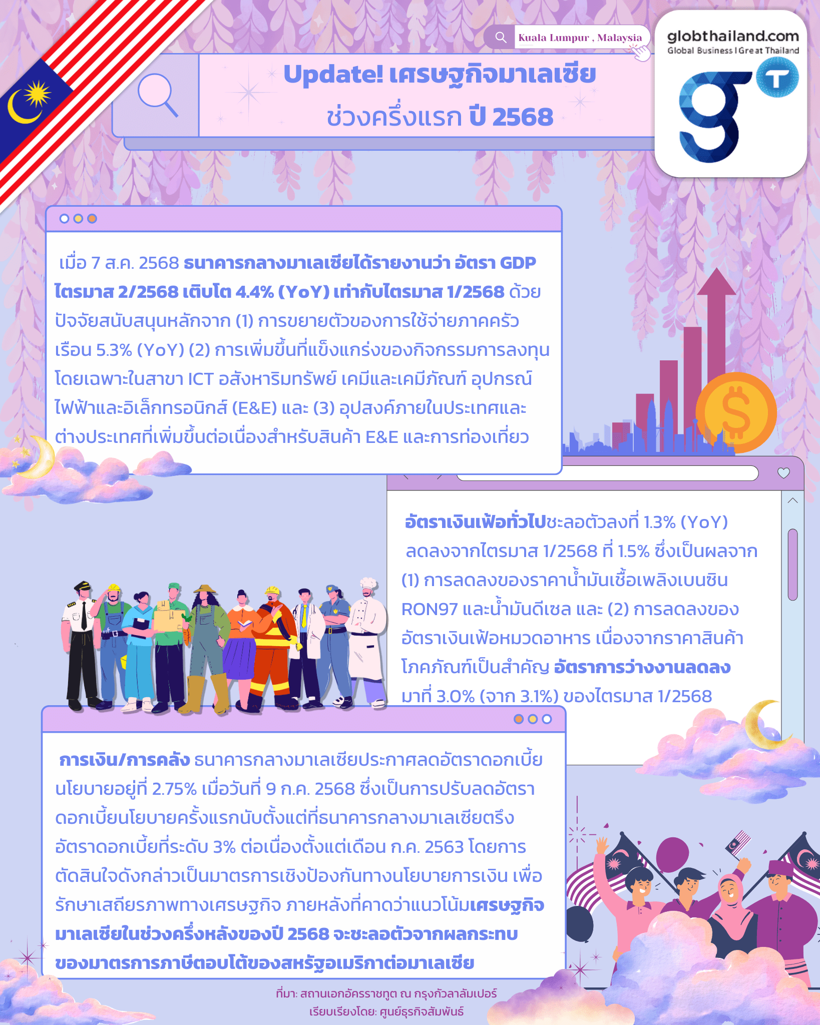 Update! เศรษฐกิจมาเลเซียช่วงครึ่งแรก ปี 2568