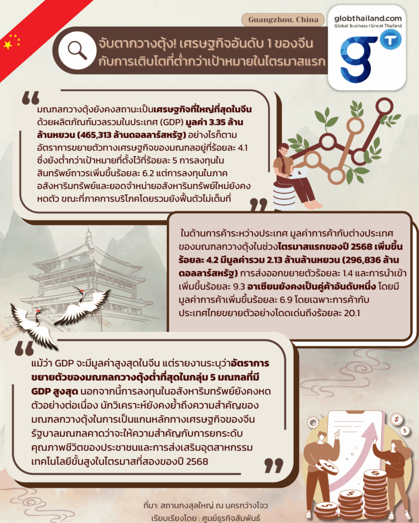 จับตากวางตุ้ง! เศรษฐกิจอันดับ 1 ของจีน กับการเติบโตที่ต่ำกว่าเป้าหมายในไตรมาสแรก