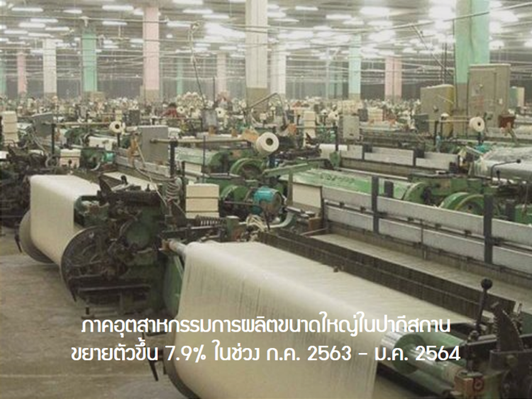 เมื่อวันที่ 17 มีนาคม 2564 สื่อท้องถิ่นในปากีสถานรายงานข่าวเกี่ยวกับการเติบโตของภาคการผลิตขนาดใหญ่ในปากีสถาน (Large-scale manufacturing sector – LSM) ขยายตัวขึ้นร้อยละ 7.9 ในช่วง 7 เดือนแรกของปีงบประมาณปัจจุบัน (กรกฎาคม 2563 – มกราคม 2564) โดยมีสาระสําคัญ ดังนี้