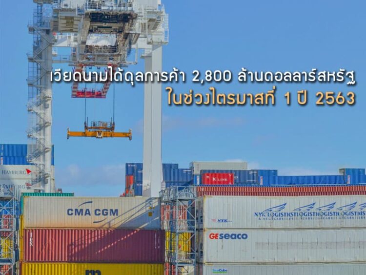 เวียดนามได้ดุลการค้า 2,800 ล้านดอลลาร์สหรัฐ ในช่วงไตรมาสที่ 1 ปี 2563